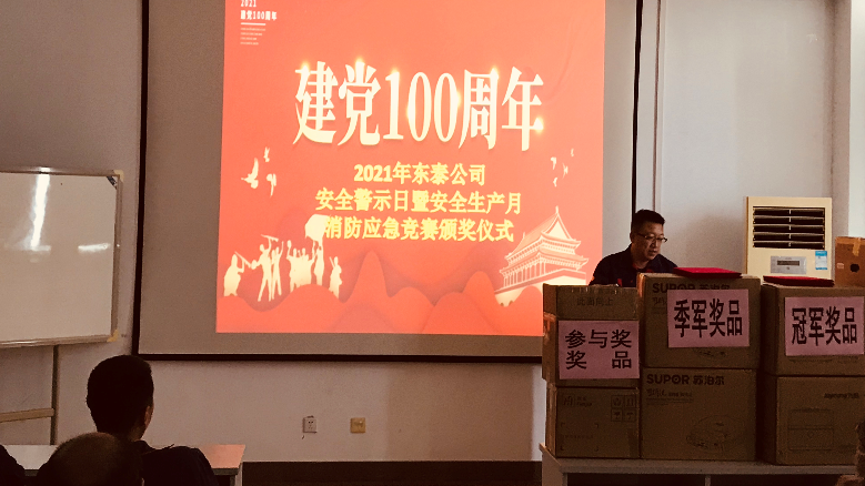 为表彰先进、树立导向、营造氛围,公司于2021年6月30日组织了颁奖仪式,向冠、亚、季军及参与员工颁发荣誉证书及奖品,结合颁奖仪式,就建党百年及下一步复工抢产安全生产形势简要教育动员。